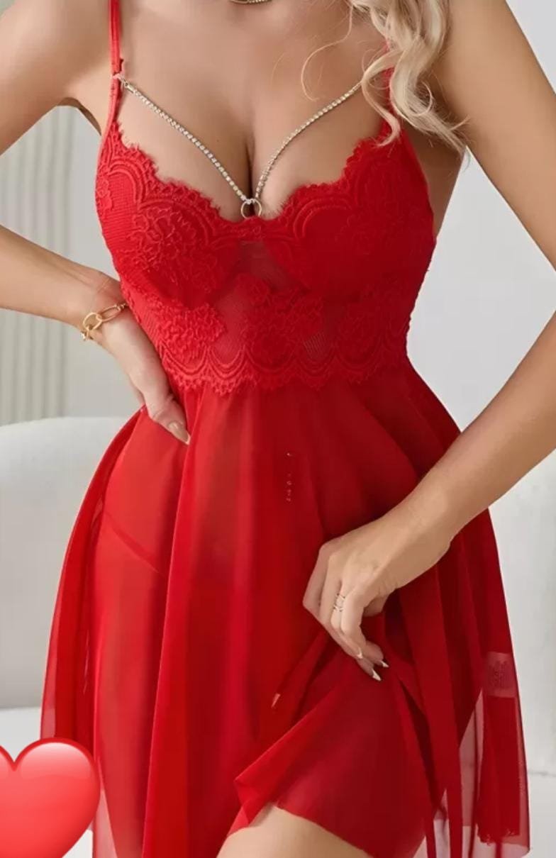 Fantazi ağ krujevalı Ağ rəngli, incə krujeva və tülün vəhdətindən hazırlanan, sinəsi daşlı zəncir detallı şık gecəlik dəstidir. Bədən xətlərini zərif şəkildə nümayiş etdirən və yumşaq materialı ilə rahatlıq verən bu model S, M, L və XL ölçülərində təqdim olunur. Bizi Instagram və TikTok-da izləyə bilərsiniz.