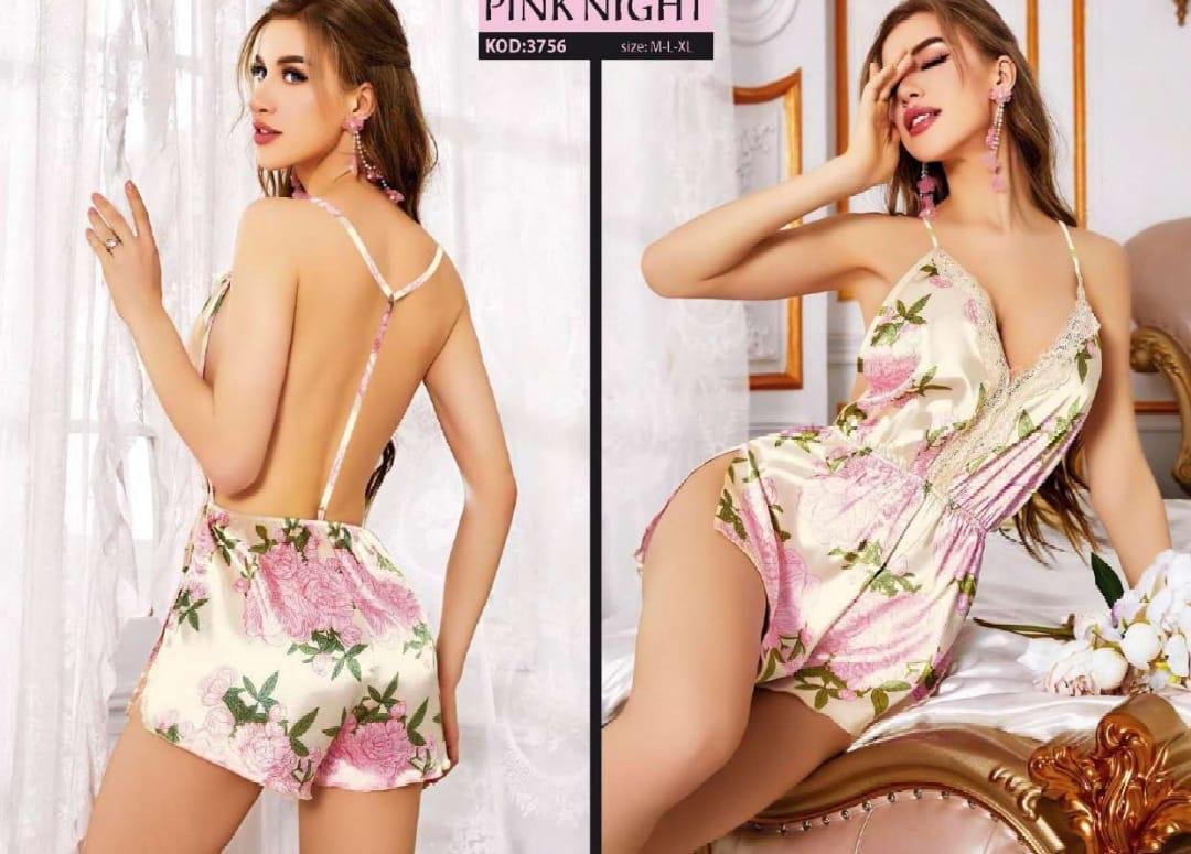 Fantazi çiçəkli gecəlik Çəhrayı gül naxışlı, dərin kürək dekolteli zərif atlas gecəlik. Özəl anlarınız üçün həm şık, həm də rahat bir fantazi geyimi axtaranlar üçün ideal seçimdir. Bizi Instagram və TikTok-da izləyə bilərsiniz. Ölçülər: M, L, XL