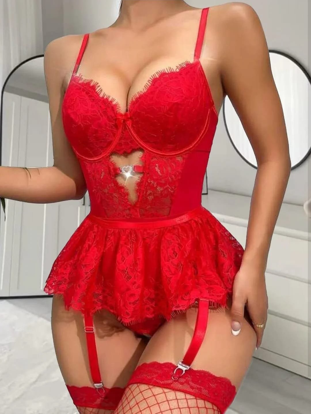 Fantazi jartiyerli dəst Qırmızı krujeva naxışlı, demirli və culki dəstə daxil olan fantazi gecəlik. M, L və XL ölçüləri mövcuddur, bədənə tam oturan və ehtiraslı görünüş təmin edən bir modeldir. Bizim Instagram və TikTok hesablarımızı izləyə bilərsiniz.