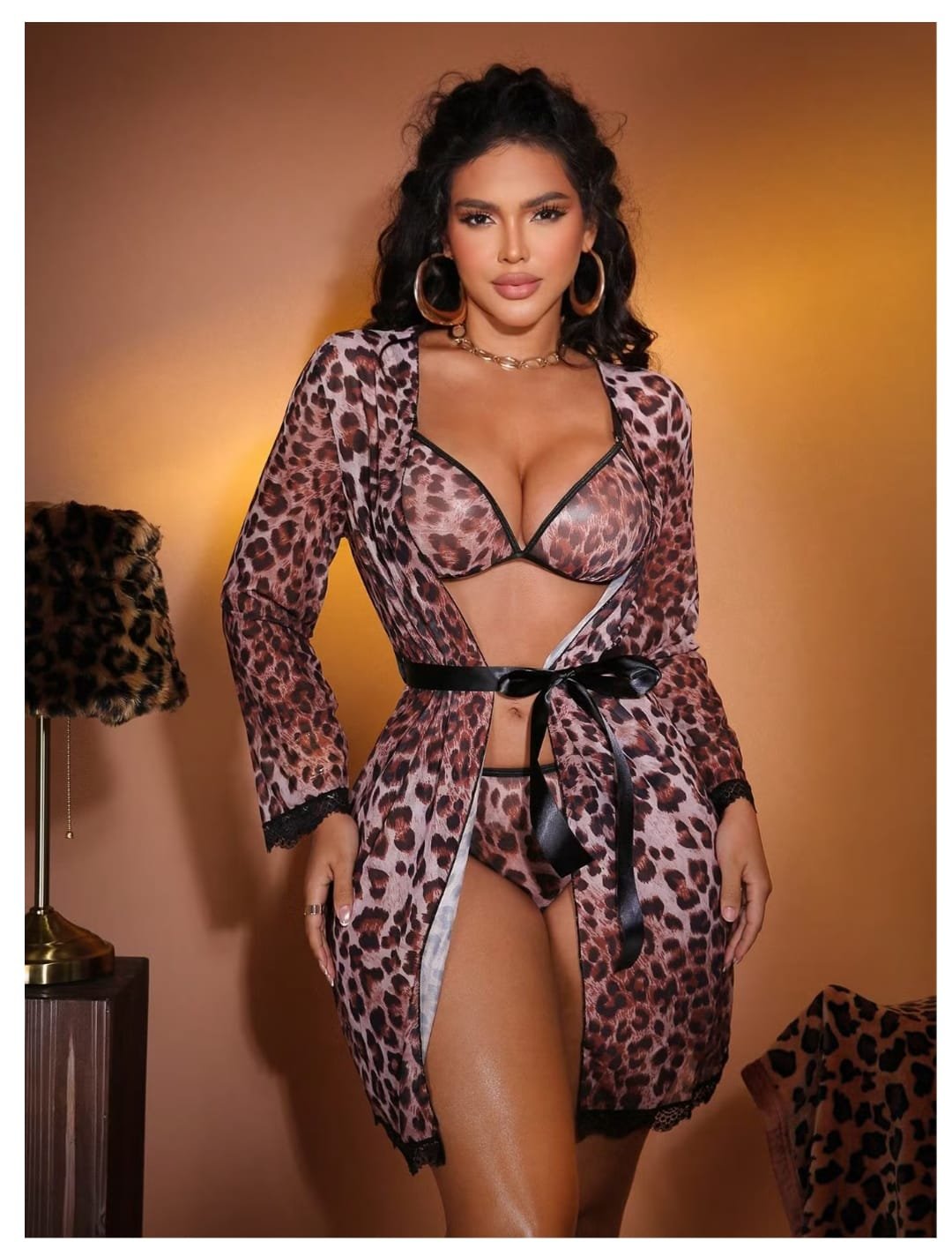 Fantazi krujeva pünyar Sinesi demirli və cəlbedici bəbir naxışlı bu 3-lü pünyar dəsti, M, L və XL ölçü variantları ilə hər bədən tipinə mükəmməl uyğun gəlir. Sabahlıq, büstqalter və alt geyimdən ibarət olan bu şık modeli əldə etmək üçün bizi Instagram və TikTok-da izləyə bilərsiniz