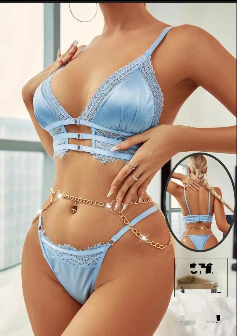 Fantazi zəncirli model Qızılı tonlarda, zərif zəncir və krujeva detallı, Türkiyə istehsalı olan fantazi dəst. Məhsulun S ölçüsü mövcuddur. Həm keyfiyyətli, həm də cəlbedici dizaynı ilə fərqlənir. Bizi Instagram və TikTok-da izləyə bilərsiniz.