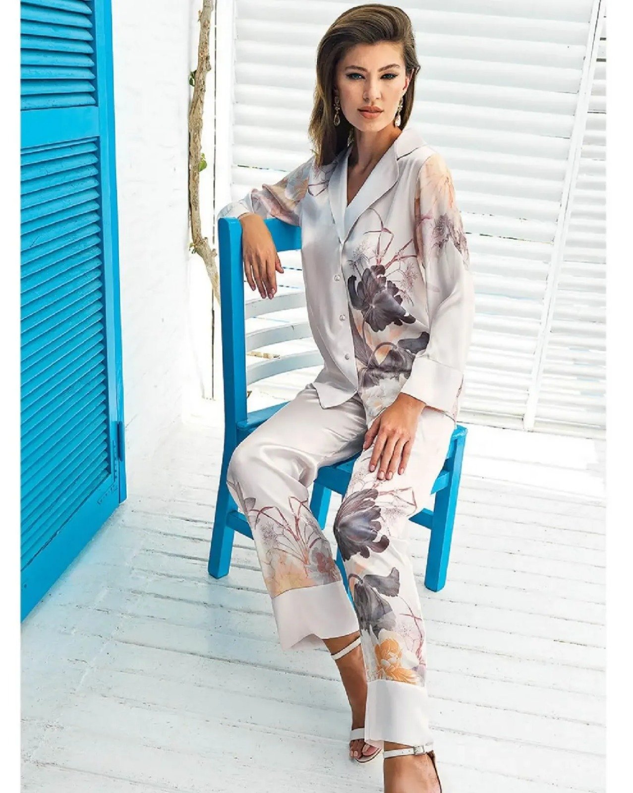 Güpürlü Saten (Atlas) Pijama Dəsti – Perin 5201