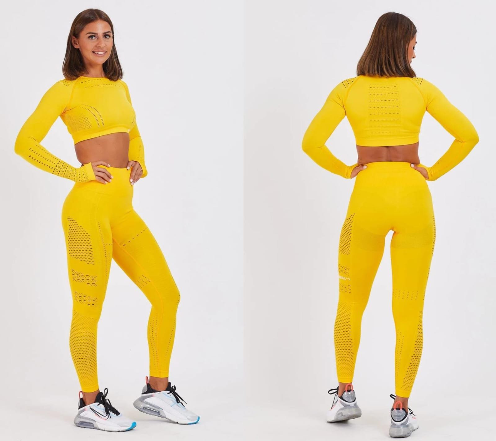 İdman dəsti sarı uzunqol Canlı sarı rəngli, dikişsiz və hava keçirən dəlikli dizayna malik uzunqol idman dəsti. Elastik materialı bədəni tam sarıyır, hündür bel legins isə maksimum rahatlıq və estetik görünüş bəxş edir. S, M və L ölçüləri mövcuddur. Bizi Instagram ve TikTok-dan izleye bilersiniz.