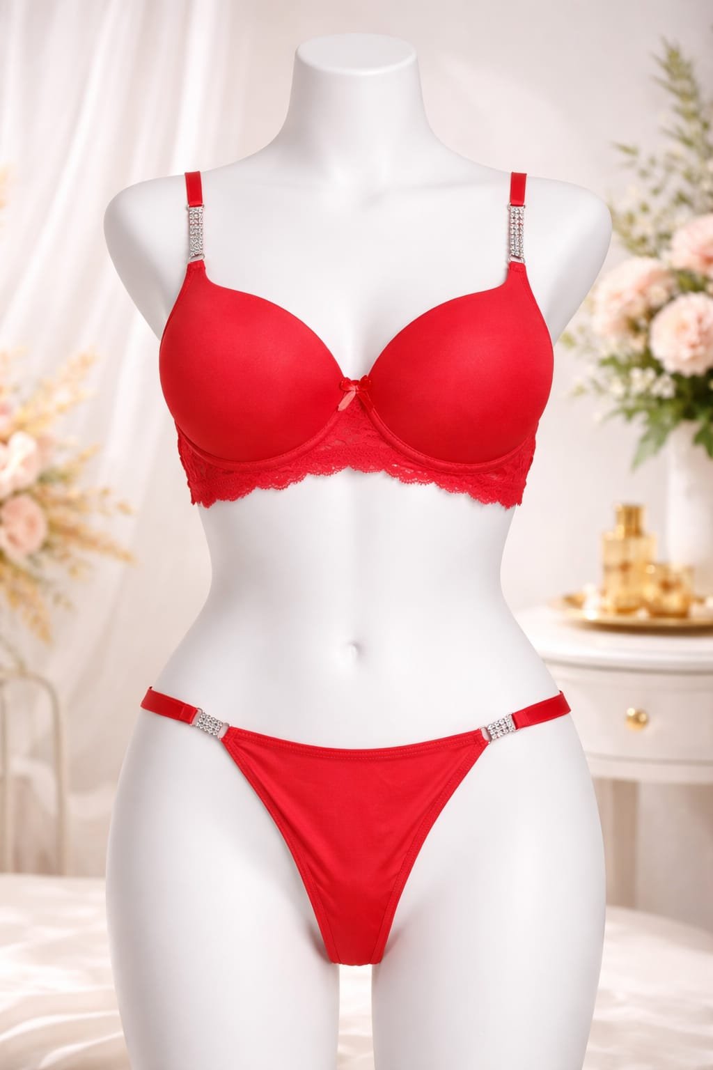 Lifon dəst Zərifliyi və cazibədarlığı bir arada təqdim edən bu qırmızı daxili geyim dəsti, xüsusi günləriniz üçün mükəmməl seçimdir. Bədənə tam oturan dolğulu (içi dolu) büstqalteri və parıldayan daş detallı asqıları ilə həm komfort, həm də vizual gözəllik bəxş edir. Keyfiyyətli materialdan hazırlanan bu lifon dəst dərinizin nəfəs almasını təmin edərək gün boyu özünüzü özgüvənli hiss etdirəcək. İndi icgeyim.az saytından 75, 80, 85 və 90 (B) ölçülərini sifariş edərək qarderobunuza rəng qata bilərsiniz.