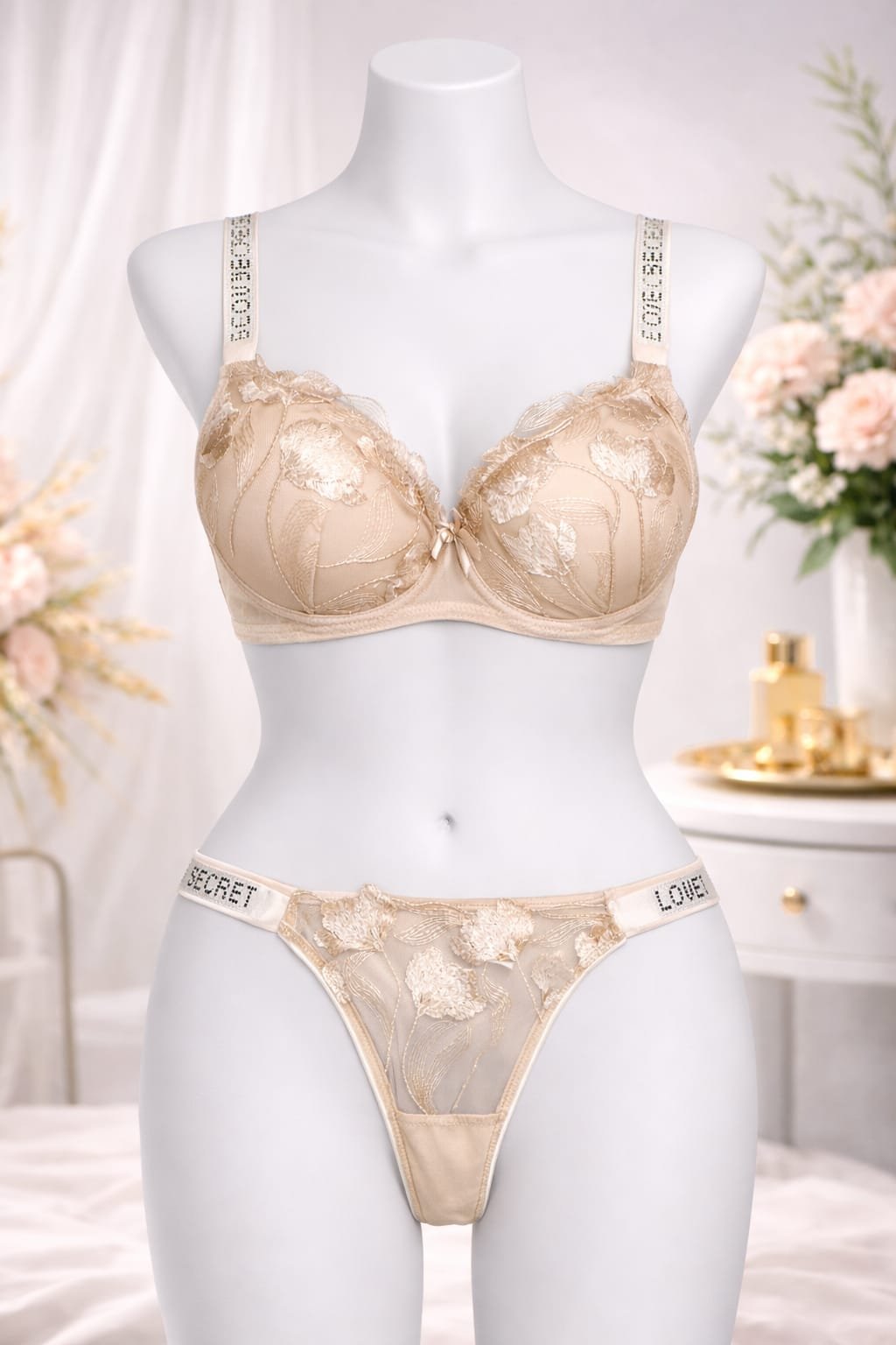 Lifon güllü daşlı İncə gül naxışları və parıldayan daşlı asqı detalları ilə bəzədilmiş dolğulu lifon dəst. Zərifliyi və rahatlığı eyni anda hiss etmək istəyən xanımlar üçün mükəmməl seçimdir.