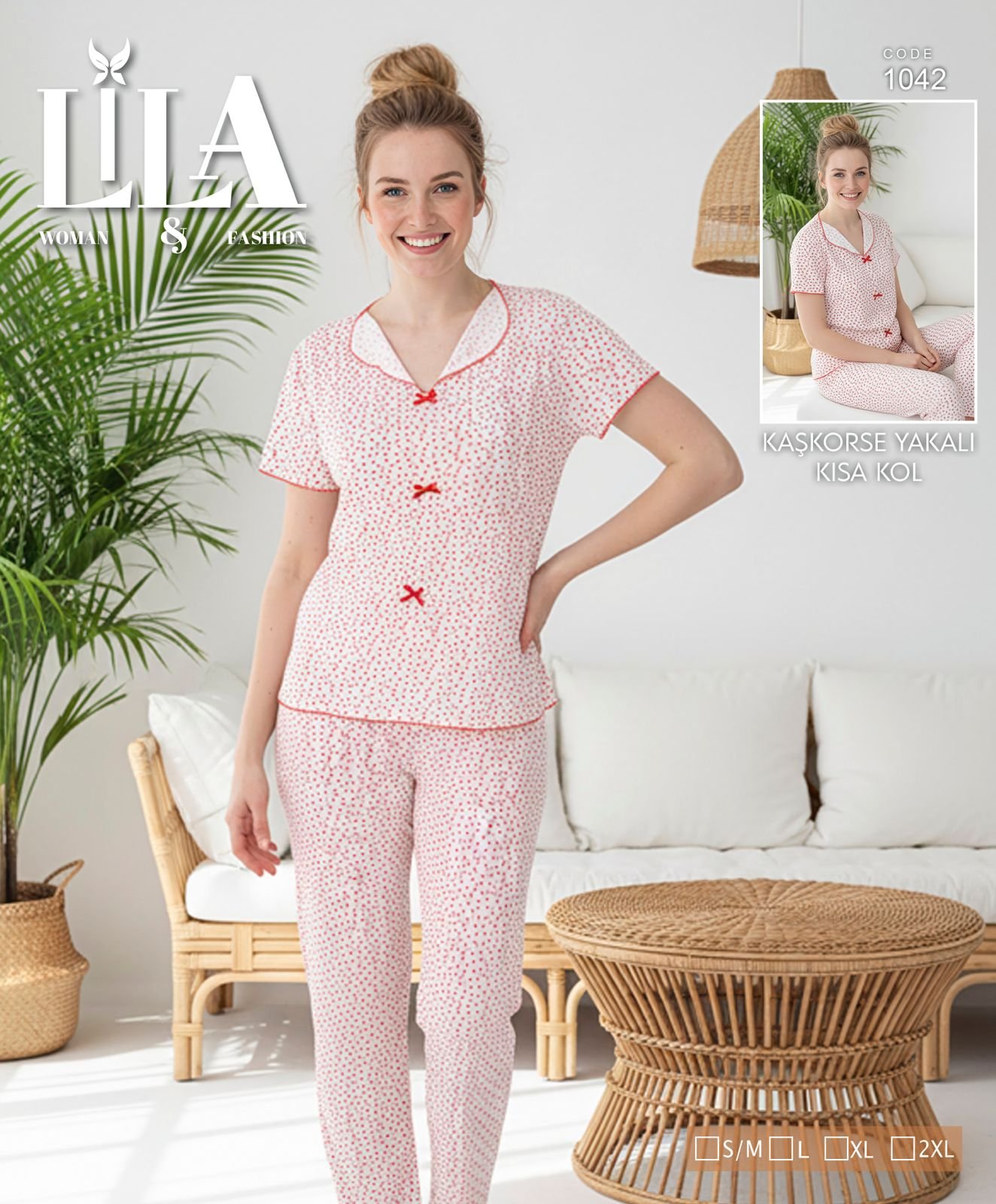 Pijama gül naxışlı Gül naxışları ilə bəzədilmiş, qısaqol və şalvarlı kaşkorse pijama dəsti. Yaxasındakı zərif bantik detalları və yumşaq parça keyfiyyəti ilə evdə keçirdiyiniz vaxtı daha komfortlu edəcək. Bədənə tam oturan rahat kəsimi və Türkiyə istehsalı keyfiyyəti ilə seçilən şık bir modeldir. Bizi Instagram ve TikTok-da izleye bilersiz.