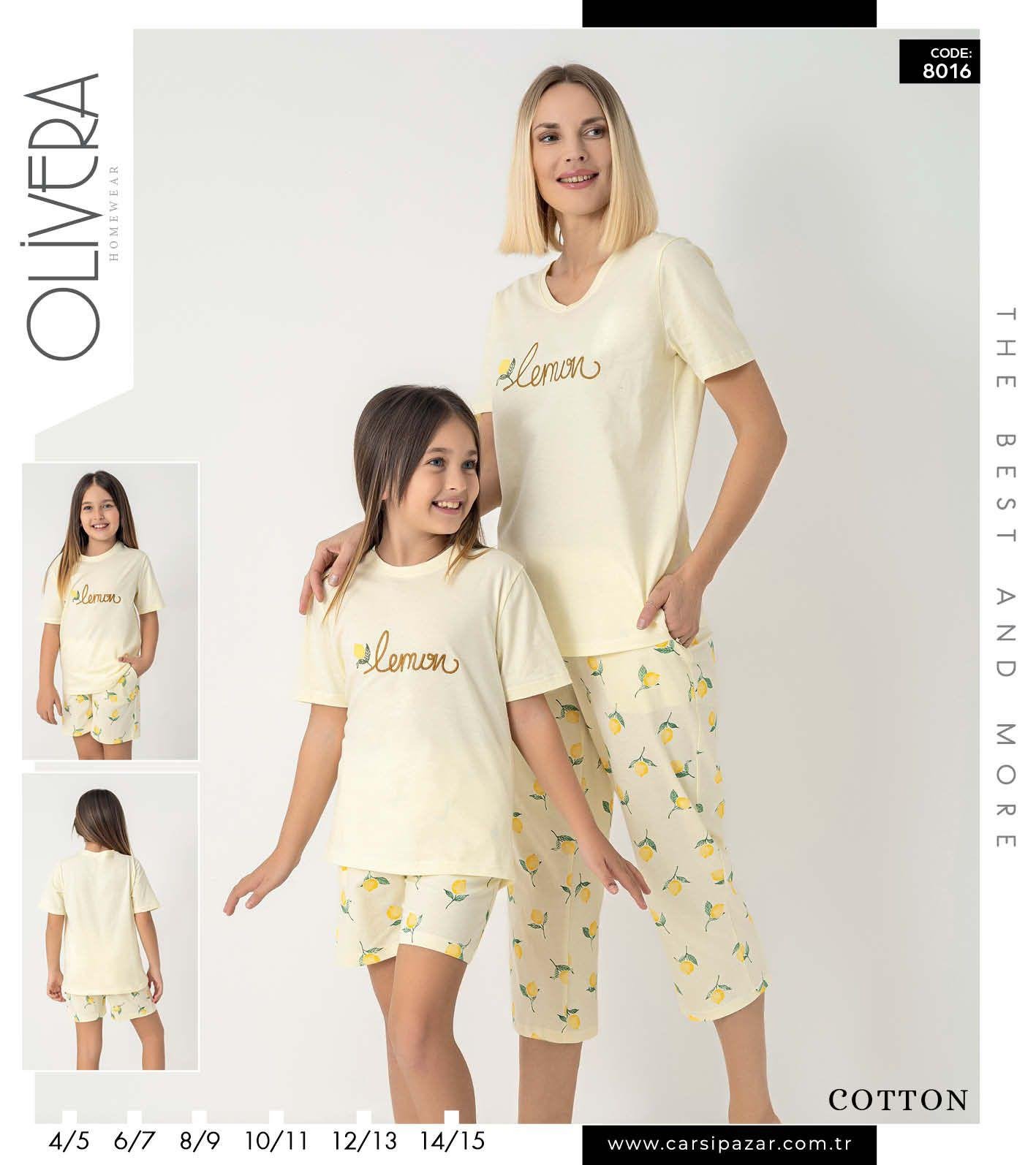 Pijama limonlu uşaq Olivera markasına məxsus bu sevimli limon naxışlı uşaq pijama dəsti, 100% pambıq (cotton) materialdan hazırlanaraq yay günləri üçün mükəmməl sərinlik təmin edir. Üst hissəsi qısaqol və üzərində “Lemon” yazısı olan dəst, alt tərəfdə rəngarəng limon printli şort ilə tamamlanaraq uşağınıza enerji dolu bir görünüş bəxş edir. Təbii və yumşaq parçası dərini qıcıqlandırmır, hərəkət azadlığı yaradır və evdə keçirilən vaxtı daha rəngli edir.