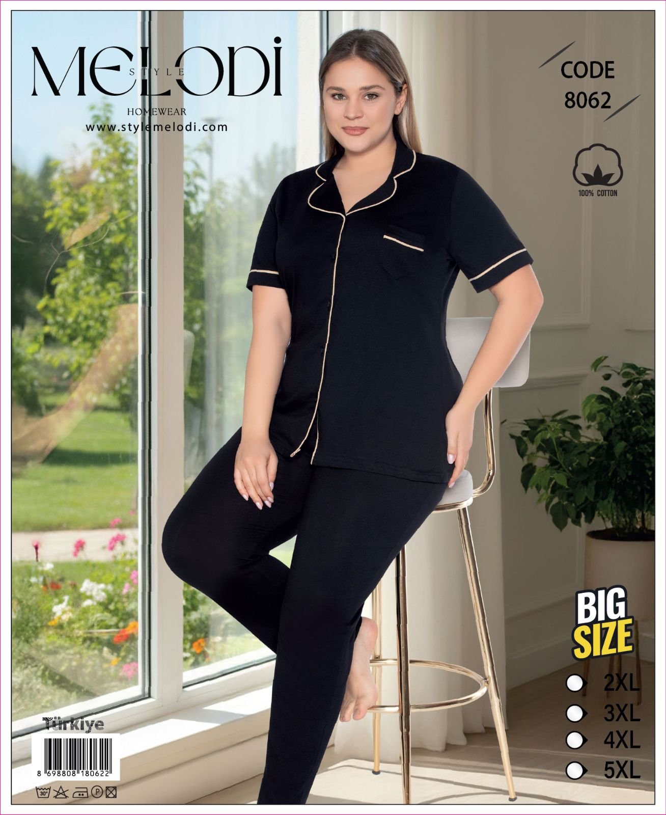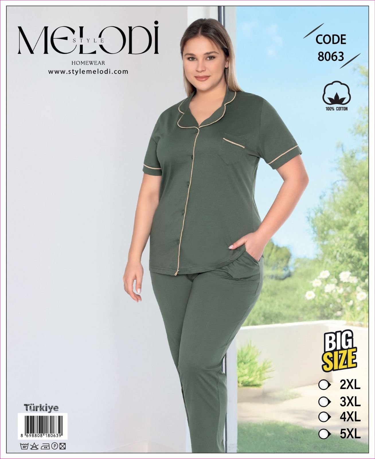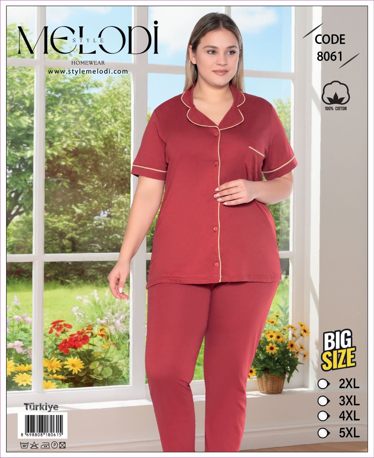 Pijama pambıq böyük ölçü Melodi Melodi brendindən 100% pambıq tərkibli, yumşaq və keyfiyyətli böyük ölçü pijama dəsti. Üç fərqli rəng seçimi mövcuddur: 2XL, 3XL, 4XL və 5XL ölçüləri ilə satışdadır. Bizi Instagram və TikTok-da izləyə bilərsiniz.