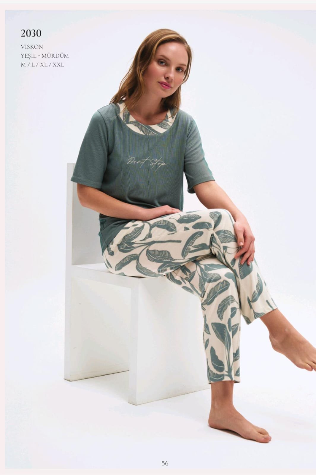 Pijama viskon yaşıl-mürdüm Türkiyə istehsalı olan, yumşaq və təbii viskon parçadan hazırlanmış dəbli pijama dəstidir. M-XXL ölçü aralığında mövcud olan bu model, həm şık yarpaq naxışları, həm də rahatlığı ilə ev geyiminiz üçün əvəzolunmazdır. Bizi Instagram ve TikTok-dan izleye bilersiniz.
