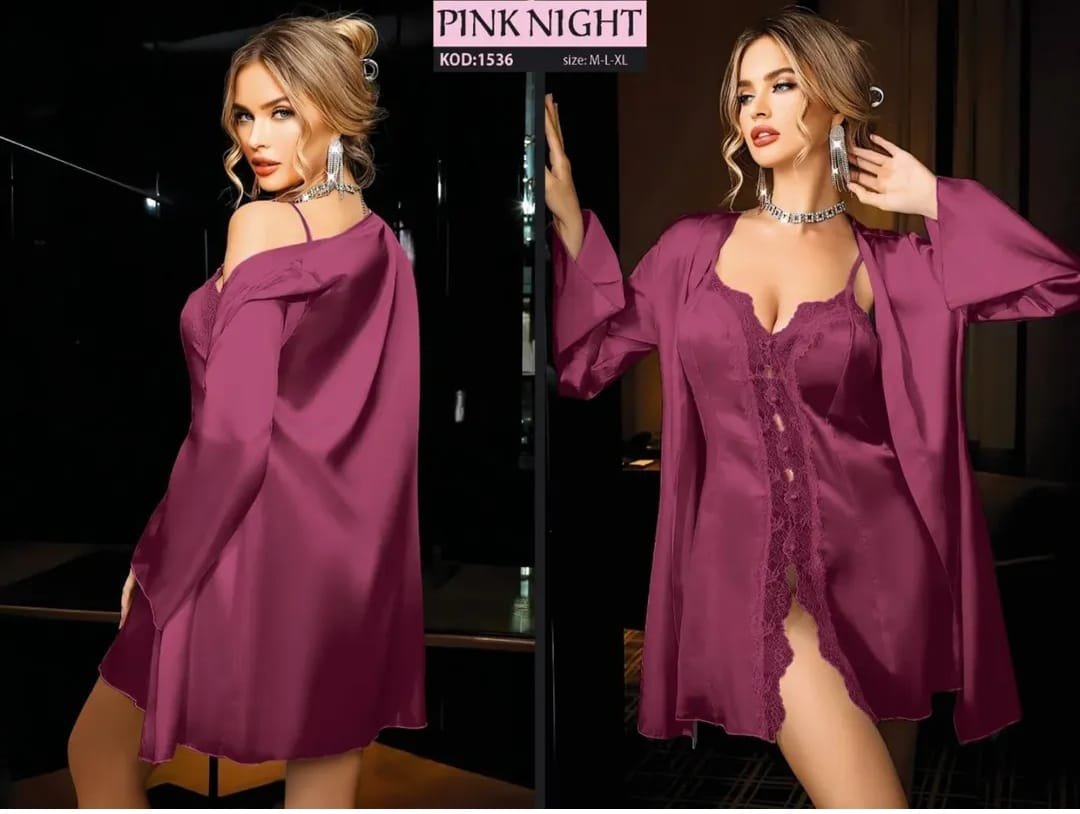 Punyar bantlı model Bənövşəyi rəngli, krujeva və bant detallı bu atlas gecəlik dəsti cazibədar görünüş üçün mükəmməldir. Məhsulun M, L və XL ölçüləri mövcuddur. Bizi Instagram və TikTok-da izləyə bilərsiniz.