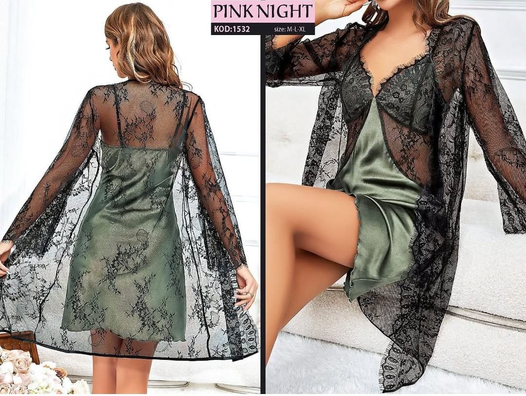 Punyar tüllü gecəlik Xaki rəngli atlas gecəlik və üzərində qara zərif krujeva xalatdan ibarət şık punyar gecəlik dəsti. M, L və XL ölçüləri mövcuddur. Bizi İnstagram və TikTok-da izləyə bilərsiniz.
