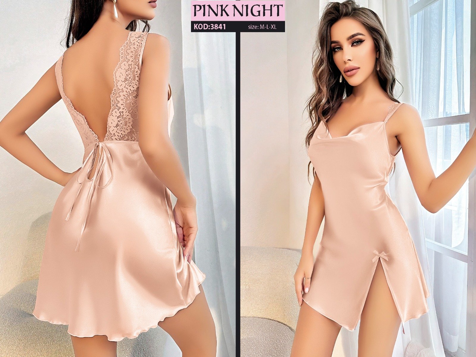 Xonçalıq dəst atlas bej Kürək hissəsi incə krujeva detallı, yan tərəfi yarıqlı bej rəngli lüks atlas gecəlik. Xonçalıq dəst kimi mükəmməl olan bu fantazi modeli həm zəriflik, həm də ehtiraslı görünüş vəd edir. Bizi Instagram və TikTok-da izləyə bilərsiniz. Ölçülər: M, L, XL